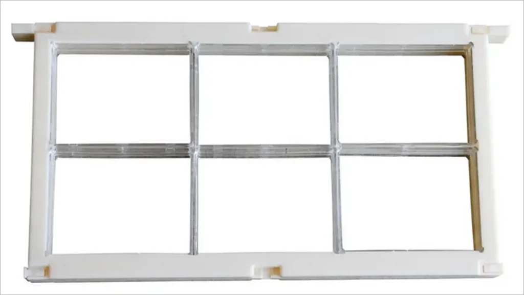 - تمیزکاری آسان: قابها بهراحتی شسته و ضدعفونی میشوند و خطر شیوع بیماریها یا آفات در کندو را کاهش میدهند. برخلاف قابهای چوبی که رطوبت را جذب کرده و ممکن است کپک بزنند یا باکتری رشد کنند، این قابها بهداشتیترند.